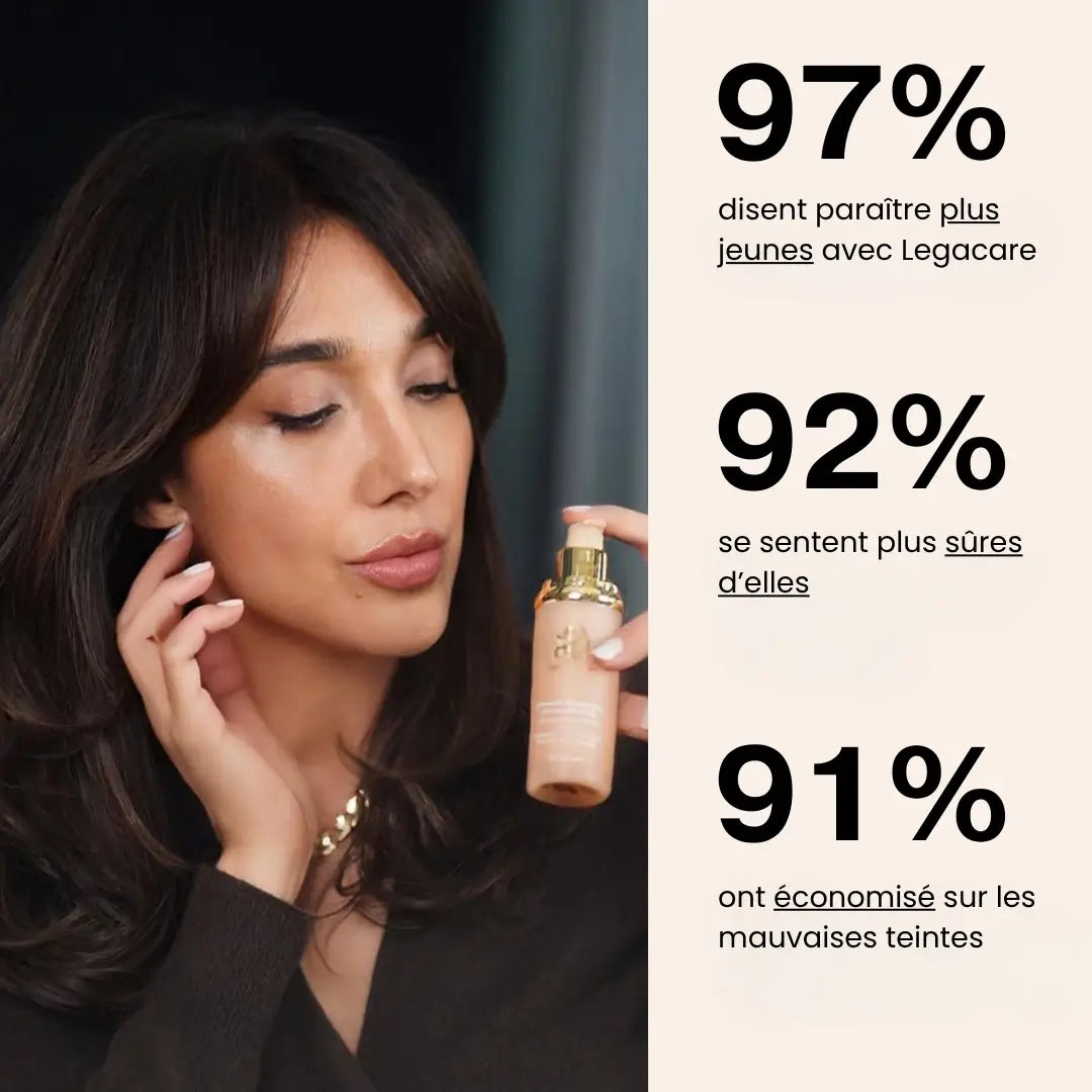 Honnêtement, j’y croyais pas trop… À mon âge, j’ai essayé pas mal de fonds de teint, mais ils finissent toujours par marquer les rides ou assécher la peau. Là, surprise totale : ma peau reste souple toute la journée, le rendu est naturel et surtout, aucune sensation de “masque”. Adopté direct !